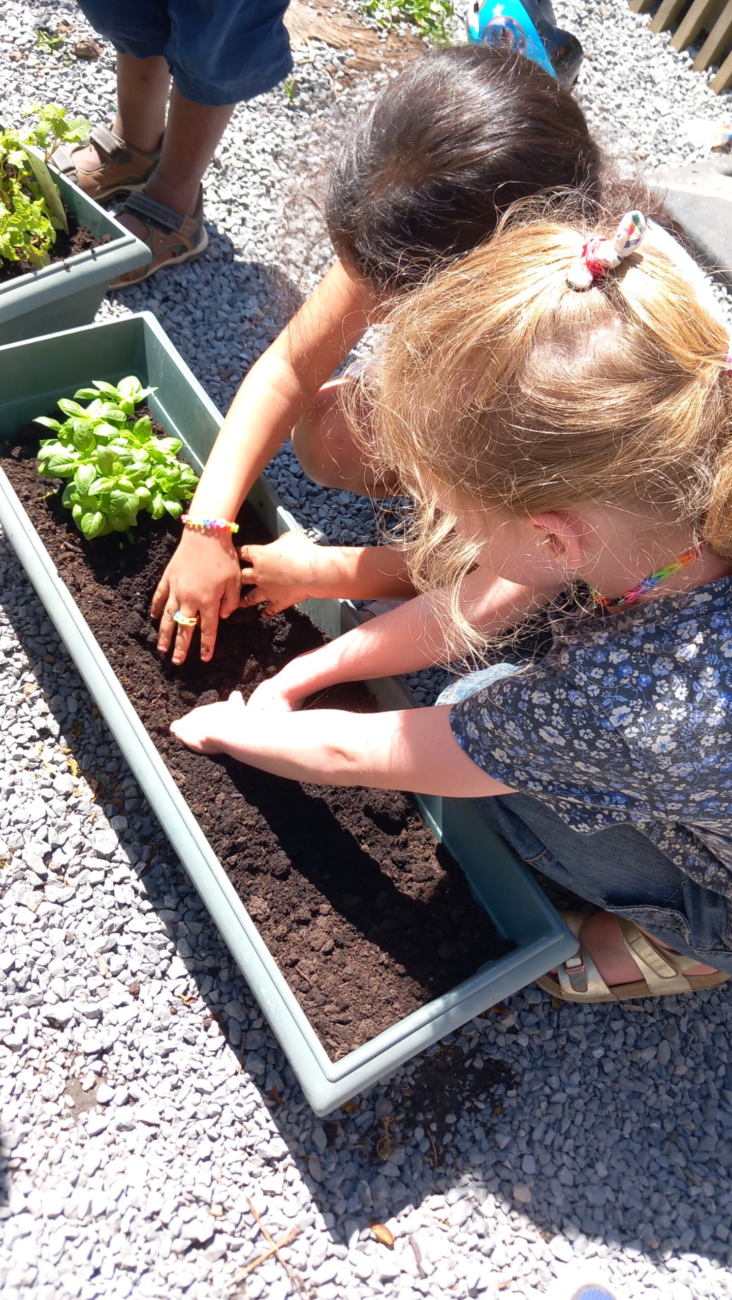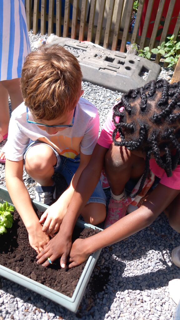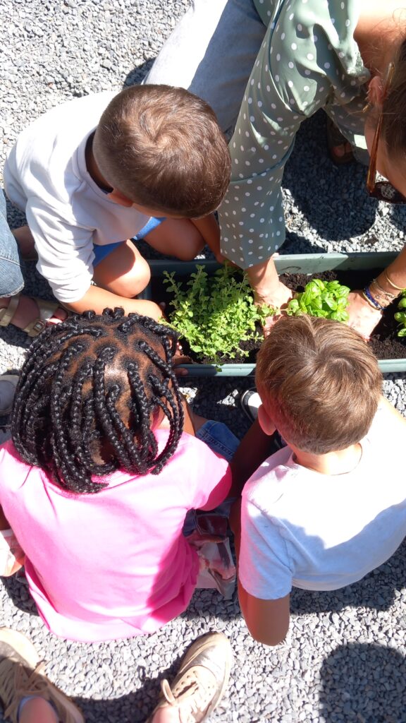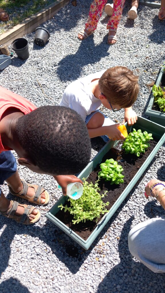 Creuser, repiquer et arroser, trois mots au centre de cette activité. Le résultat est là : de magnifiques bacs présents à côté des poules de l’école. Les élèves prendront soin des plantes l’année prochaine et seront secondé par des adultes de l’école pendant les vacances.