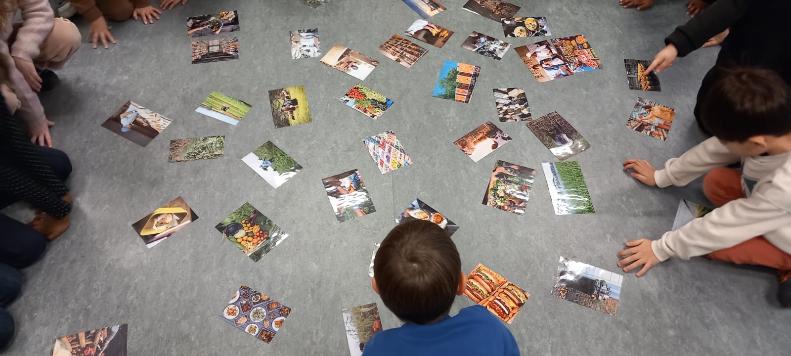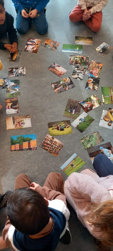 Les élèves se sont également prêtés à un exercice de classement d’images, répartissant celles-ci en trois grandes catégories : ce qui se passe à la ferme, là où l’on peut acheter les produits, et enfin les photos représentant des personnes qui mangent ou de la nourriture.