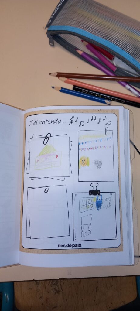 Durant une demi-journée riche en découvertes, une animatrice d’Iles de Paix a guidé les élèves dans une série d’activités interactives. Dans un premier temps, les enfants ont réfléchi à leur rapport à l’agriculture et à l’alimentation à travers une grille de Bingo sur la thématique de l’agriculture. Ils ont ensuite écouté et analysé des chansons pour découvrir des indices menant à la thématique centrale du projet.