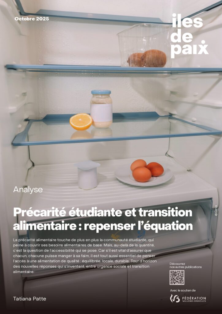 « Il m’est déjà arrivé de voler de la nourriture pour réussir à tenir ma semaine en kot. » Ce témoignage, entendu de la bouche de plusieurs étudiants universitaires de mon entourage, illustre une réalité trop fréquente : la précarité alimentaire touche aujourd’hui une part grandissante du monde étudiant. Le constat est clair : de plus en plus d’étudiants et étudiantes dépendent d’aides publiques, de jobs cumulés ou de dispositifs d’urgence pour couvrir leurs besoins alimentaires de base. Mais, au-delà de la quantité, une autre question se pose : à quelle alimentation ces jeunes ont-ils vraiment accès ? Car s’il est vital d’assurer que chacun, chacune puisse manger à sa faim, il est tout aussi essentiel de penser l’accès à une alimentation de qualité : équilibrée, locale, durable. C’est dans cet espace, entre urgence sociale et transition alimentaire, que s’inventent aujourd’hui de nouvelles réponses.